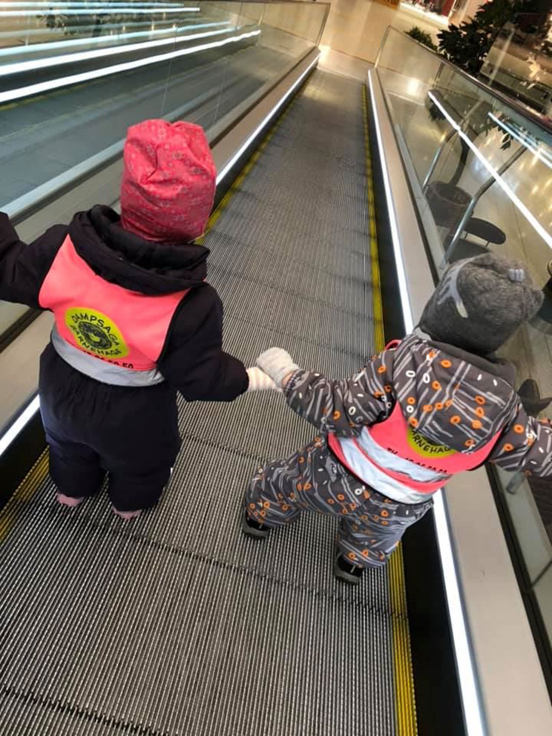 Når det er ting som må ordnes i byen hender det at vi gjør det til en tur for en liten gruppe barn. Tenk så mye det er å utforske i byen. To gode venner tar rullebåndet, da er det godt å ha en venn å holde i hånden.